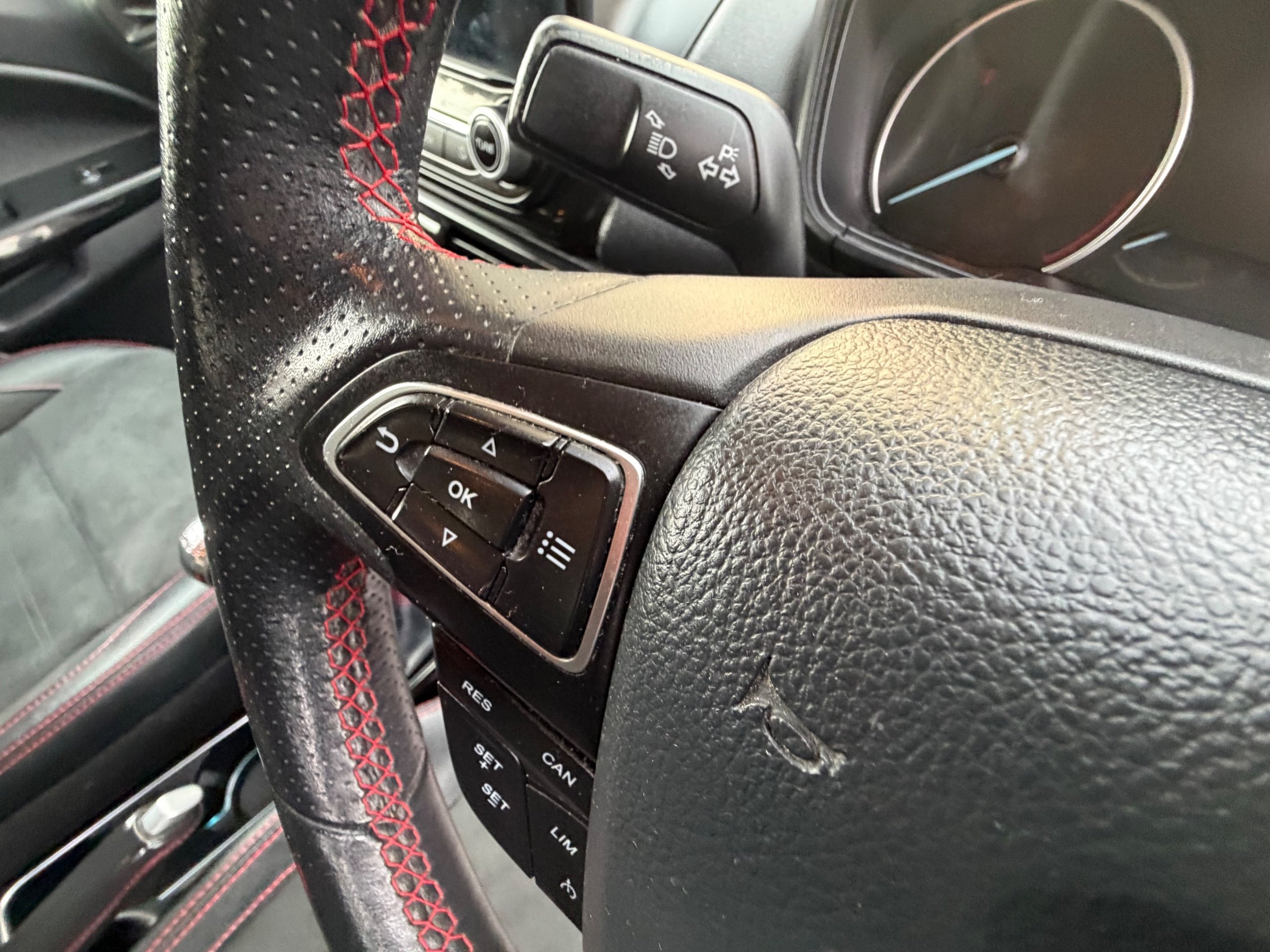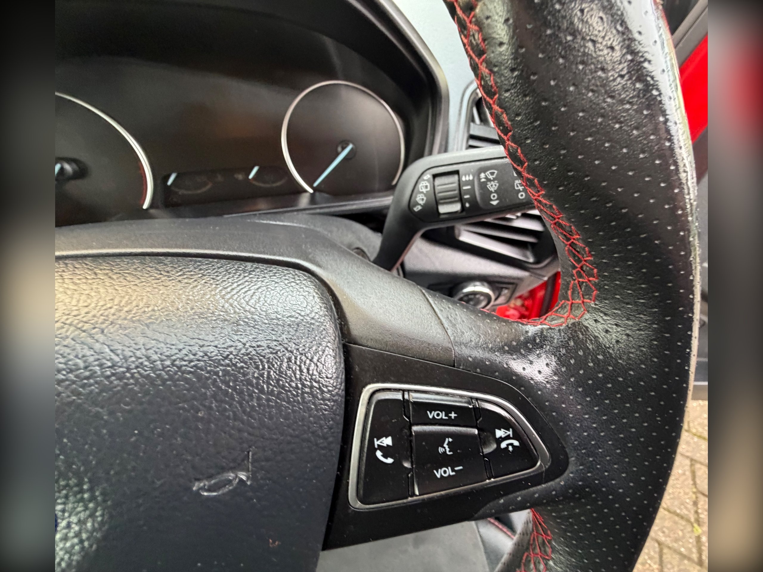 - Steering Wheel - Perforated Leather-Trimmed with Chrome Inserts and Red Stitching